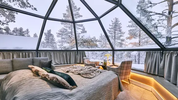 Is spotting the Northern Lights high on your bucket list? Why not book an overnight stay in a magical glass igloo. These unique glass igloos offer an unparalleled view of the starry night sky, and if you're lucky, the mesmerising Northern Lights may make an appearance. Fall asleep under a blanket of stars, surrounded by the enchanting snow covered forests, and wake up to breathtaking views of the Lappish landscape. Don’t worry about trying to stay awake into the early hours, a wake up call is provided when the Northern Lights are overhead to ensure you don’t miss a moment.