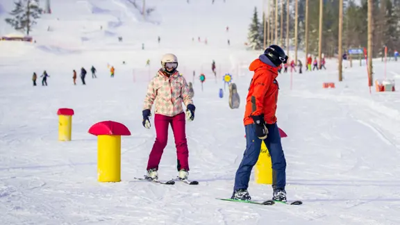 Ylläs is a top choice for skiers and snowboarders looking for space, scenery, and variety. Beginners benefit from quiet, perfectly groomed slopes, small classes, and helpful English-speaking instructors. Intermediate skiers enjoy wide, confidence-boosting runs without lift queues, while snowboarders have access to a floodlit snow park with jumps, a super-pipe, and boarder-cross course.