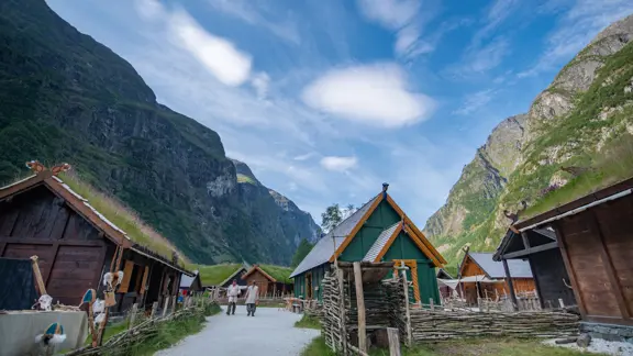 Aurlandsfjord pops up in ancient sagas as the home of the Aurlands – a wealthy Viking clan that farmed and fished the river delta. Curious about what life was like back then? Catch the ferry to Gudvangen in neighbouring Nærøyfjord for a ramble around the replica Viking village.