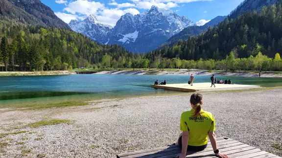 A short drive or cycle west takes you to Podkoren village, a collection of 17th Century farmhouses and inns set in a wildflower valley. Keep following the road parallel to the Austria border, and you’ll reach Rateče – another picturesque village and home to one of Slovenia’s oldest churches. Don’t miss Zelenci Nature Reserve as you pass through. Here, boardwalks lead to a luminous turquoise lake and wetlands alive with nesting birds, amphibians and rare plants like the carnivorous sundew. Or, just two kilometres away you will find the famous Nordic Ski Centre, where you can admire the ski jumpers practicing all year round. We also love to head over the Italian border along the cycle path to Laghi di Fusine, perfect for unlocking access to the beautiful double lakes set below the majestic mount Mangart.